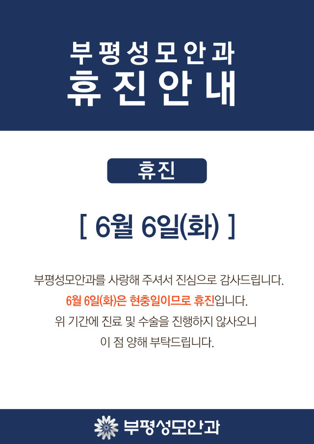 작성일17-05-31 00:00 [휴진안내]6월달 현충일 휴진안내