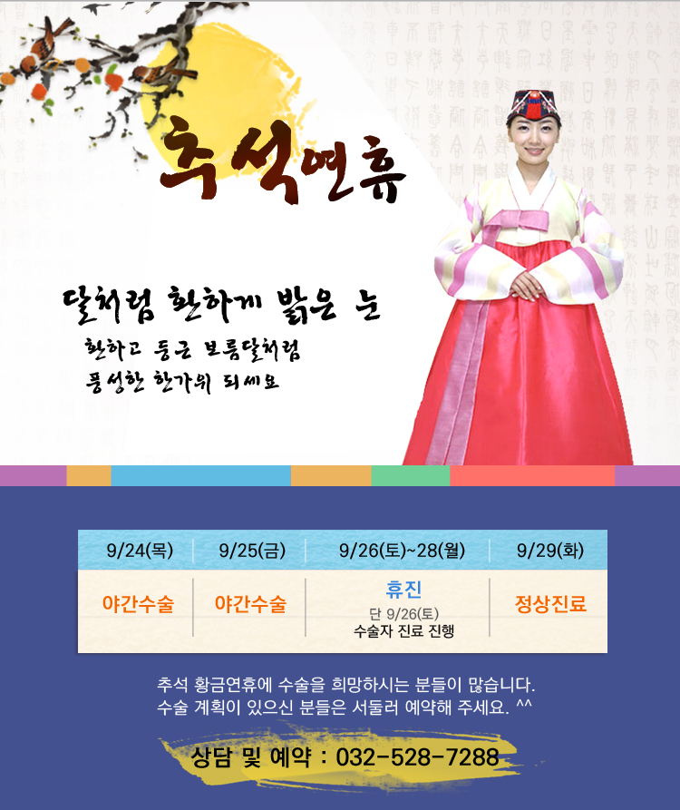 작성일15-09-10 00:00 추석 연휴 시력교정센터 진료&수술 안내