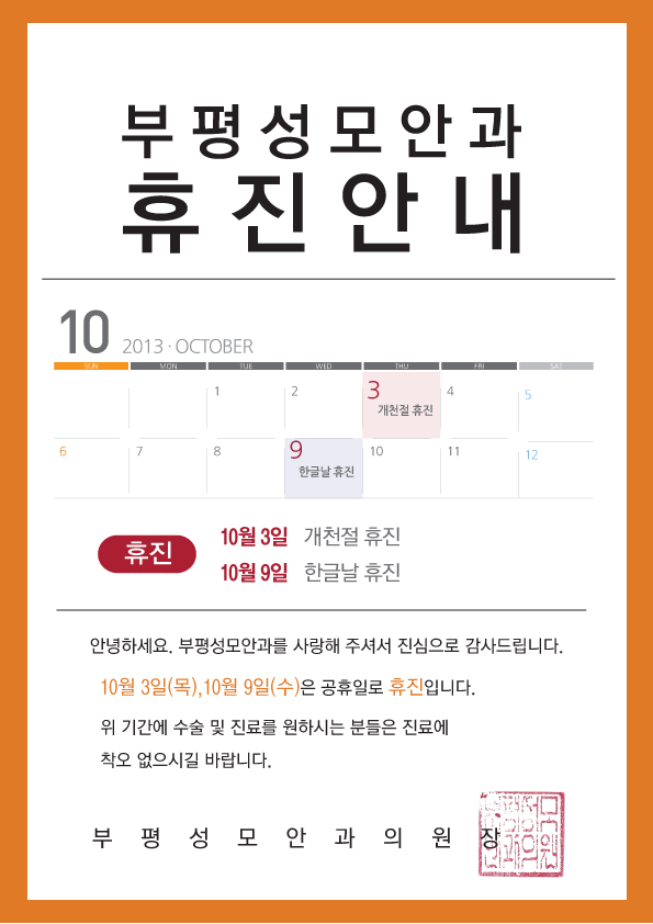 작성일13-10-02 00:00 2013년 개천절, 한글의날 휴진 안내입니다.