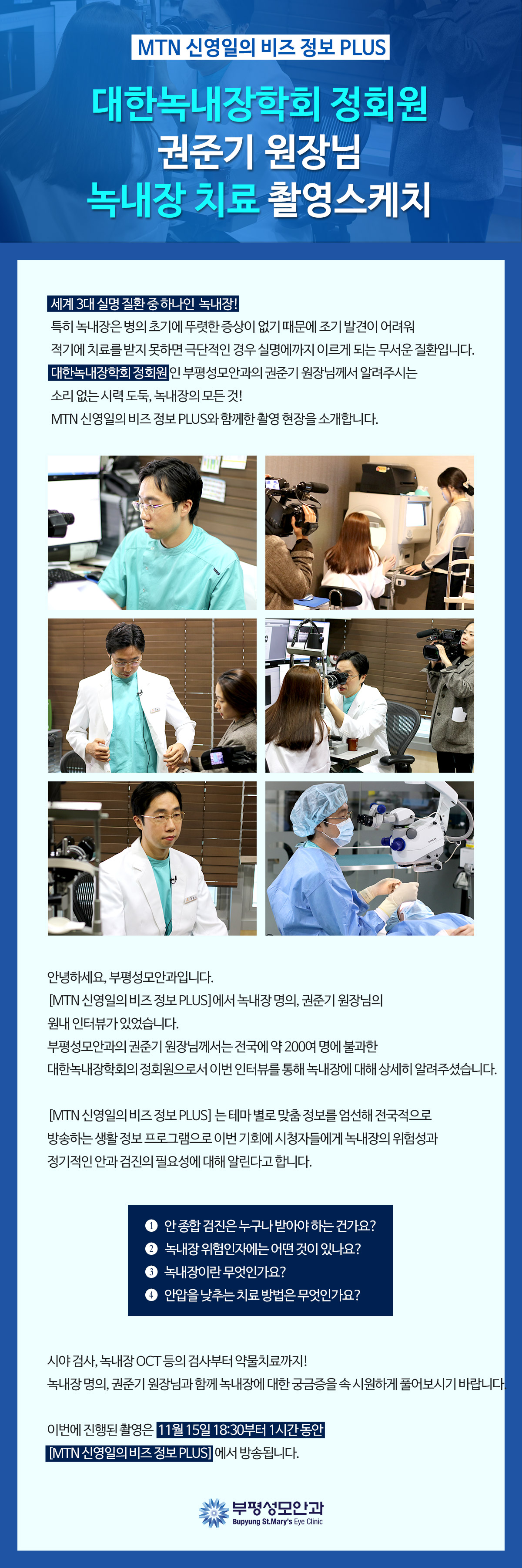작성일19-11-08 00:00 [방송] 권준기 원장님, MTN 신영일의 비즈 정보 PLUS 원내 촬영 스케치