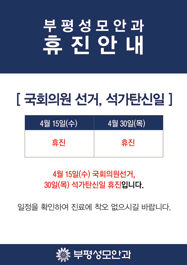 작성일20-04-13 00:00 [휴진안내] 부평성모안과 4월 휴진안내