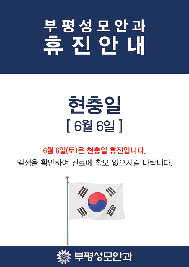 작성일20-05-28 00:00 [휴진안내] 부평성모안과 6월 현충일 휴진안내
