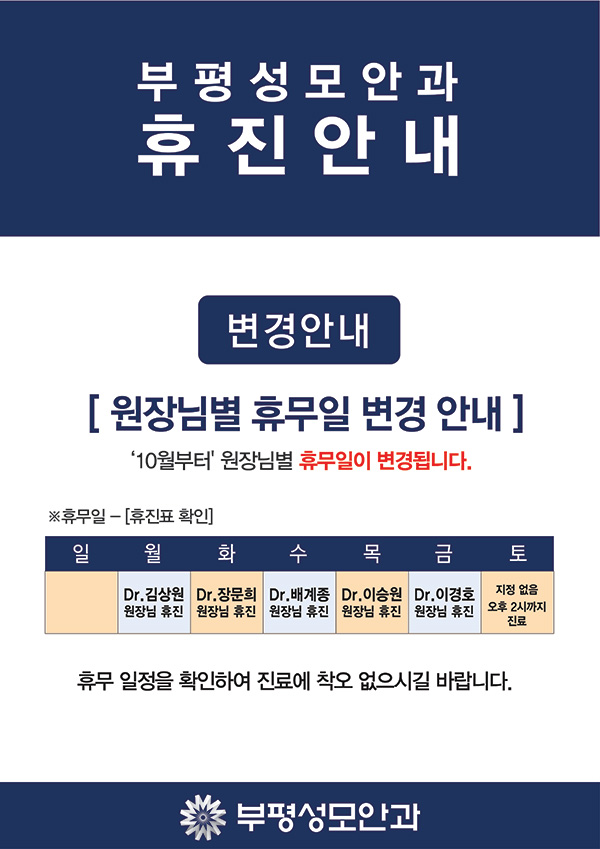 작성일18-08-16 00:00 [휴진안내] 원장님별 휴무 변경 안내