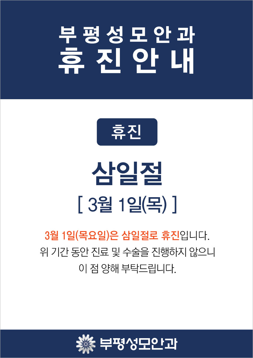 작성일18-02-22 00:00 [휴진안내] 3월 삼일절 휴진안내