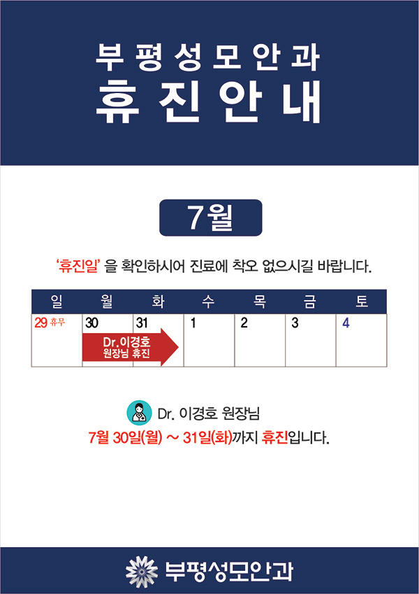 작성일18-07-20 00:00 [휴진안내] 7월 원장님 휴진안내