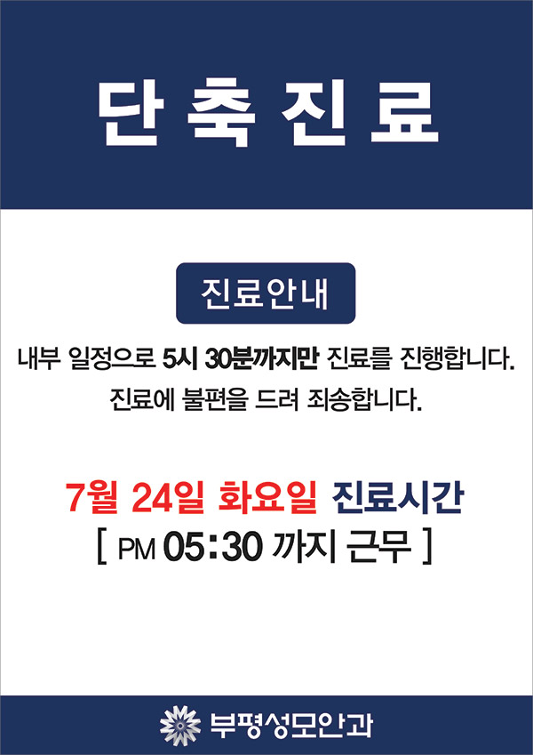 작성일18-07-24 00:00 [단축진료] 금일 진료시간 변경 안내