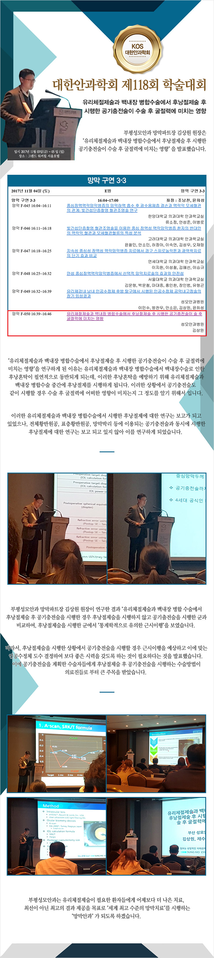 작성일18-07-24 00:00 [학회발표] KOS 학술대회 발표/ 망막파트장 김상원 원장님