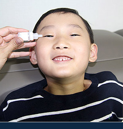눈 가림 치료에 어려움이 있는 경우 아트로핀 안약을 점안하여 조절력을 마비시키는 치료법입니다.