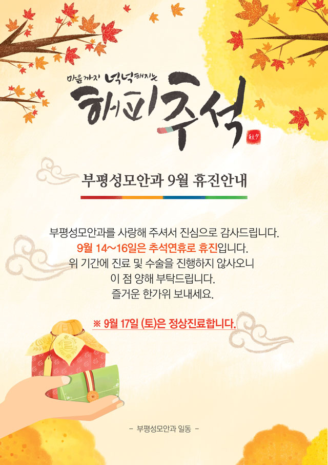 작성일16-09-01 00:00 [휴진안내]9월달 추석휴진안내