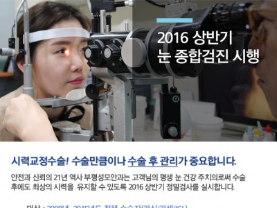 • 검사 당일 약물 검사로 인해 근거리 시력이 불편해지며 눈이 부시기 때문에 자가운전이 불가합니다.