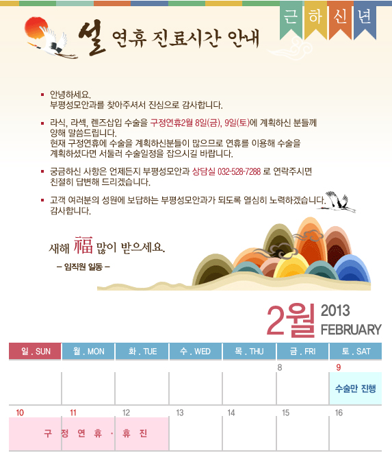 작성일13-02-01 00:00 2013년 구정 연휴 휴진안내입니다.