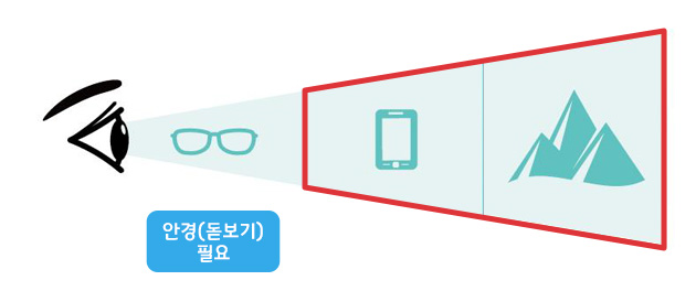 근거리 선택 시 안경이 필요하고, 원거리 선택 시 돋보기를 착용해야 잘 보이게 됩니다.