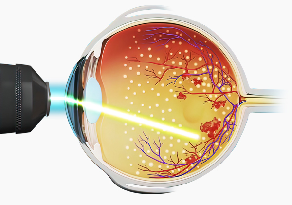 레이저를 쏘아 흉터를 만듭니다. 이로 인해 혈관 증식을 감소시키고,