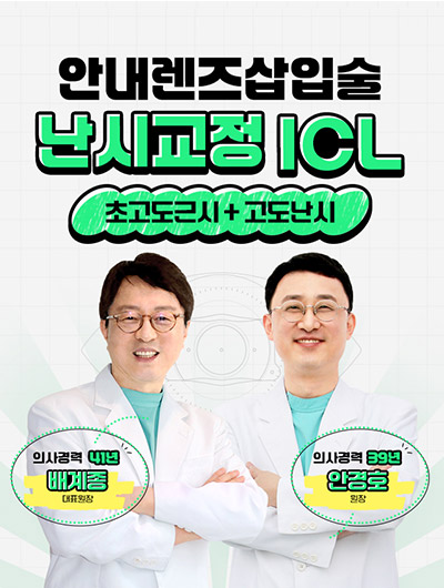 안내렌즈 삽입술은 눈 안에 렌즈를 삽입하여 시력을 교정하는 수술입니다.