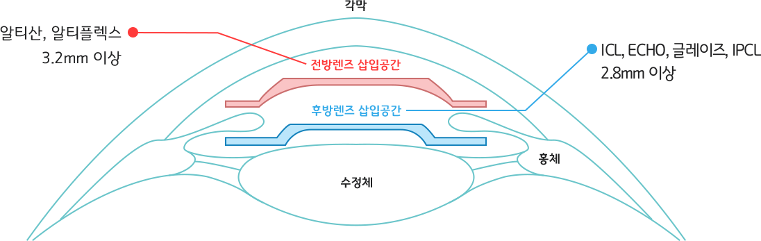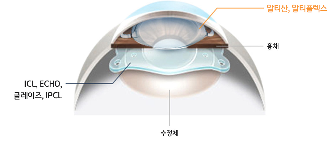 홍채와 수정체 사이에 생체친화적인 렌즈를 삽입하는 반영구적인 수술입니다.